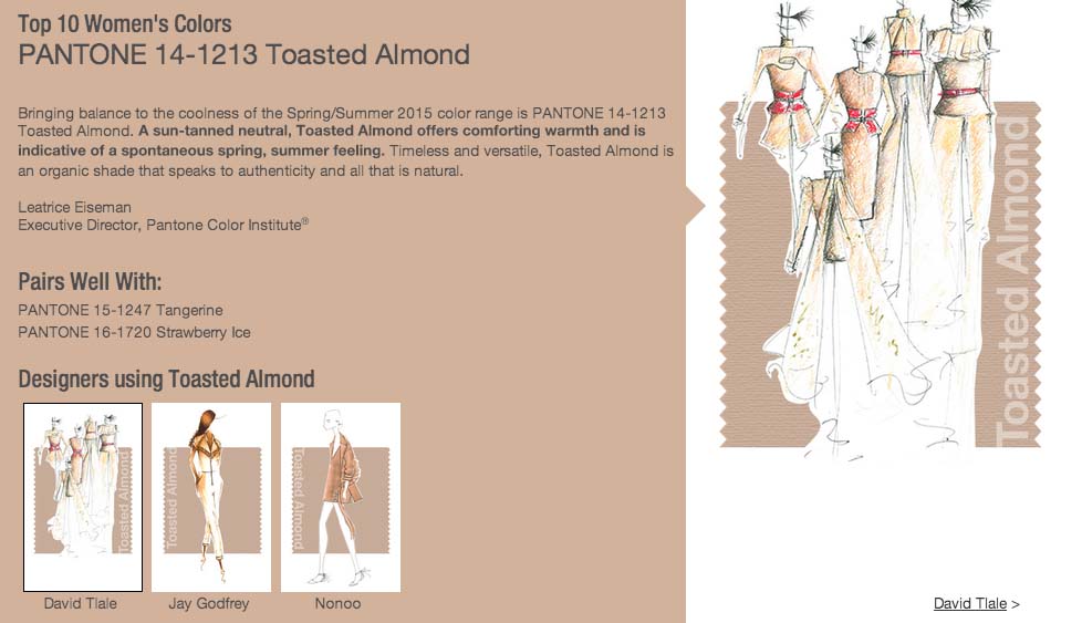 近期,Pantone也正式发布了2015春季时尚报告——“柔和清爽的色调+中和的自然色彩(Soft, Cool Hues + Nature's Neutrals)”将会是下一季的主角。