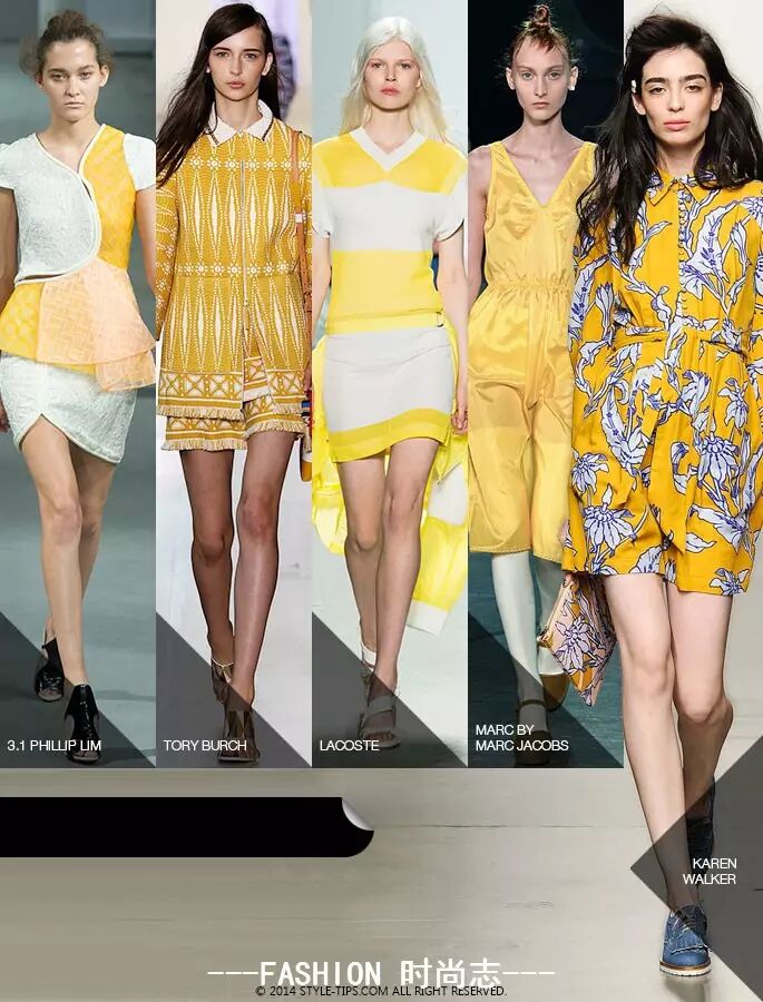 激发活力的耀眼黄色,是2015年春季大热颜色之最。不论是担当繁花图案的背景、从拼凑的板块或图案中绽放的抢眼主角也好,炽热的黄色都为迷离的春日带来全能的观感刺激。
