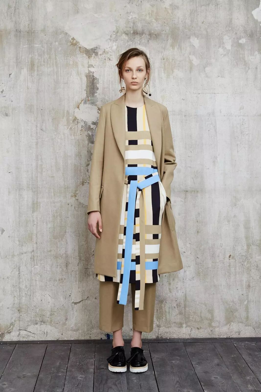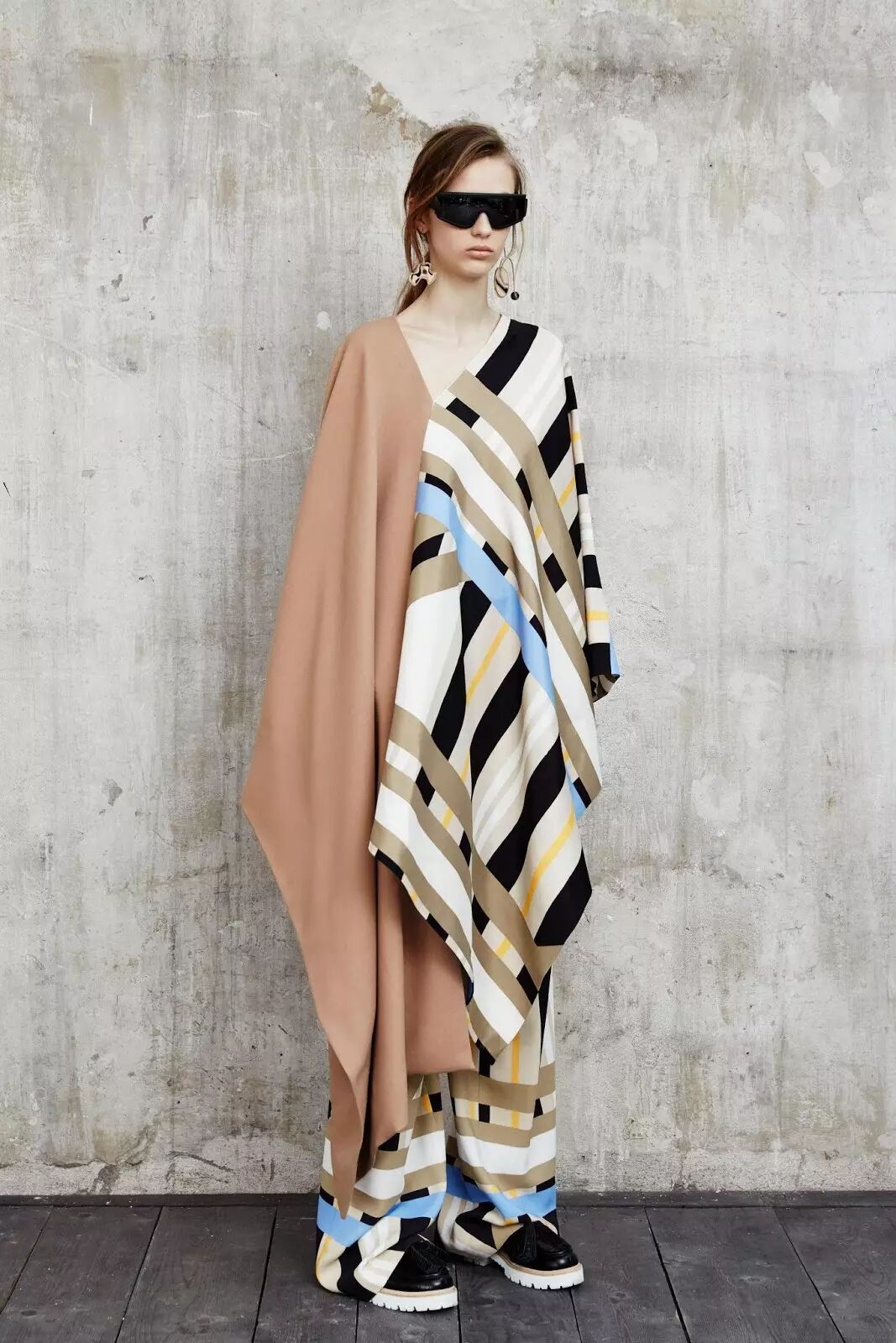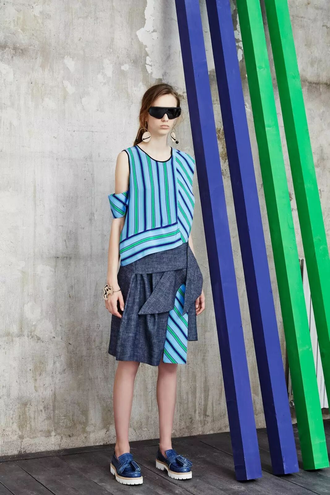 这个度假系列的场地还被别出心裁地放上了彩色的板块,衬托出设计师这个系列的心思:长条色块、不具形的几何图案等。