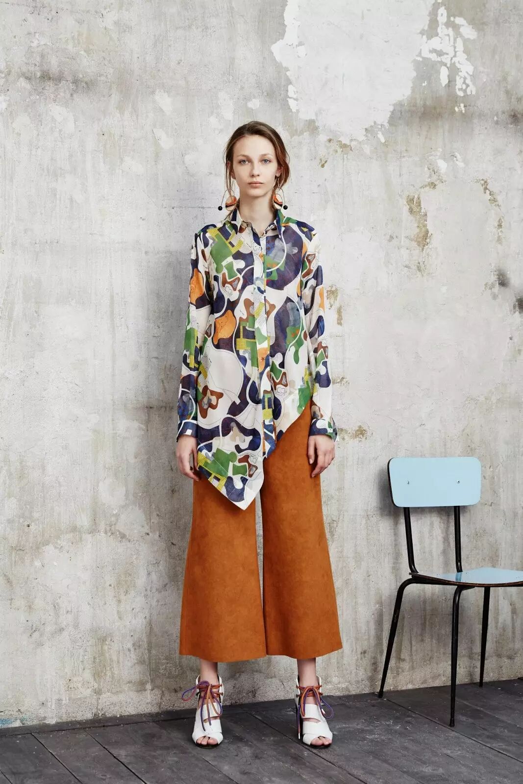 在单品的廓形方面,设计师集合了很多的复古元素以及时下大热的单品,包括阔腿裤、衬衫裙以及紧身上装搭配下身的宽松造型,这些look都非常商业化,同时也更易被人接受。