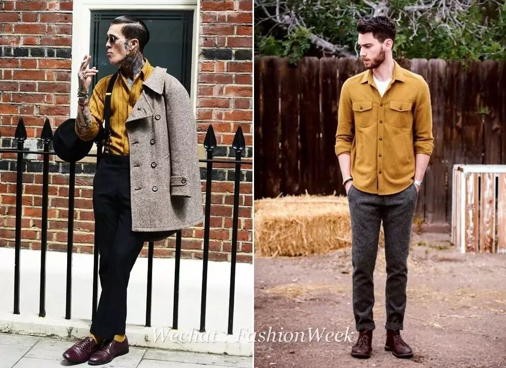 在秋冬季,穿着正黄色或者是亮黄色真的不合适,相比于春夏季的张牙舞爪,一年的末尾或许更应该用沉稳的色彩来装点自己。芥末黄是一种极经典的颜色,亮却不耀眼,亮中有柔和,亮中有美,这也是它为什么能用于男装的深层原因。