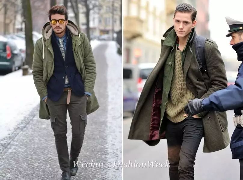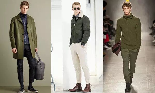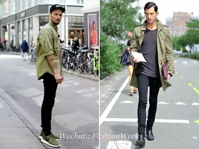 同色系绿色穿得很帅,不同深浅程度可以突出层次感。