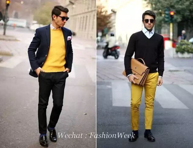 型男芥末黄衬衫配的还是黑白灰,记住了这个是不会出错的。