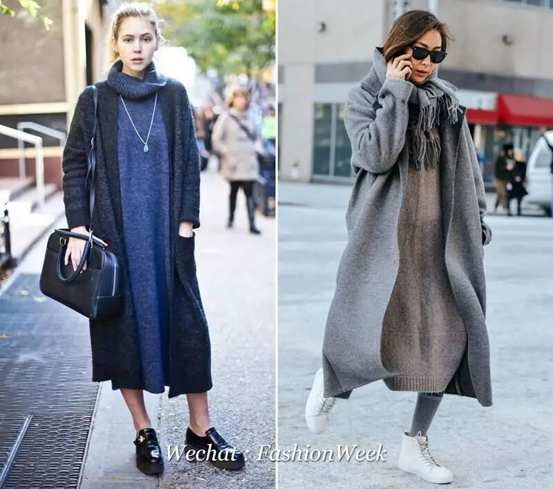 不用里三层外三层,把自己包得严严实实,用长度相仿的超长版毛衣裙配羊毛大衣就足够了。