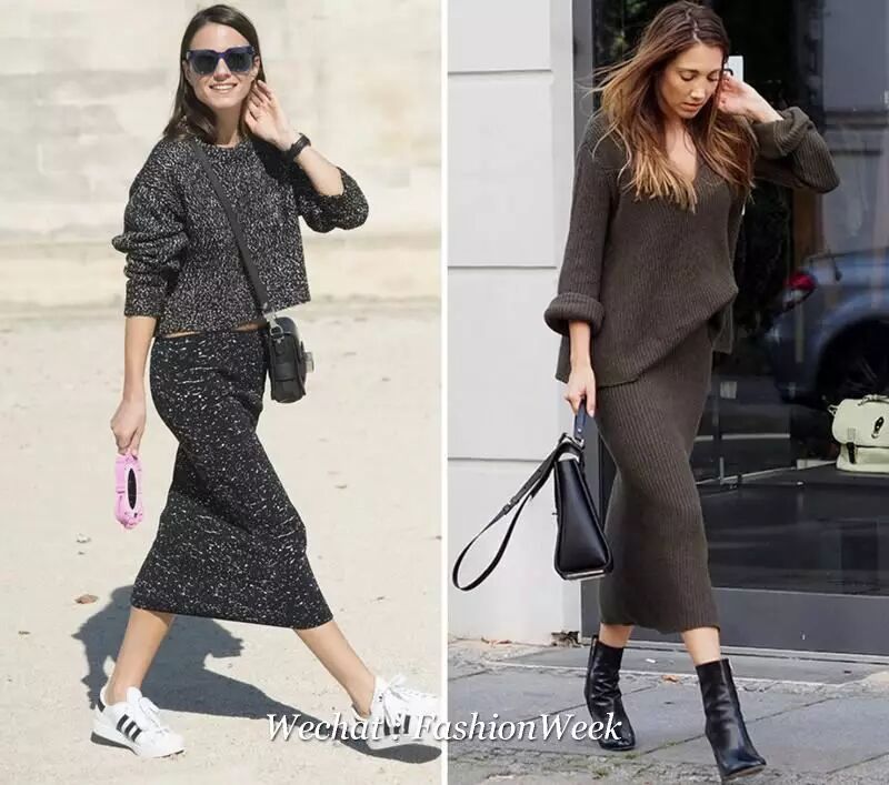 每天出门都要为搭配抓狂一番的妹子大可放心,套装的针织裙一上身就搞定了,黑白两色的运动鞋和短靴随便搭。